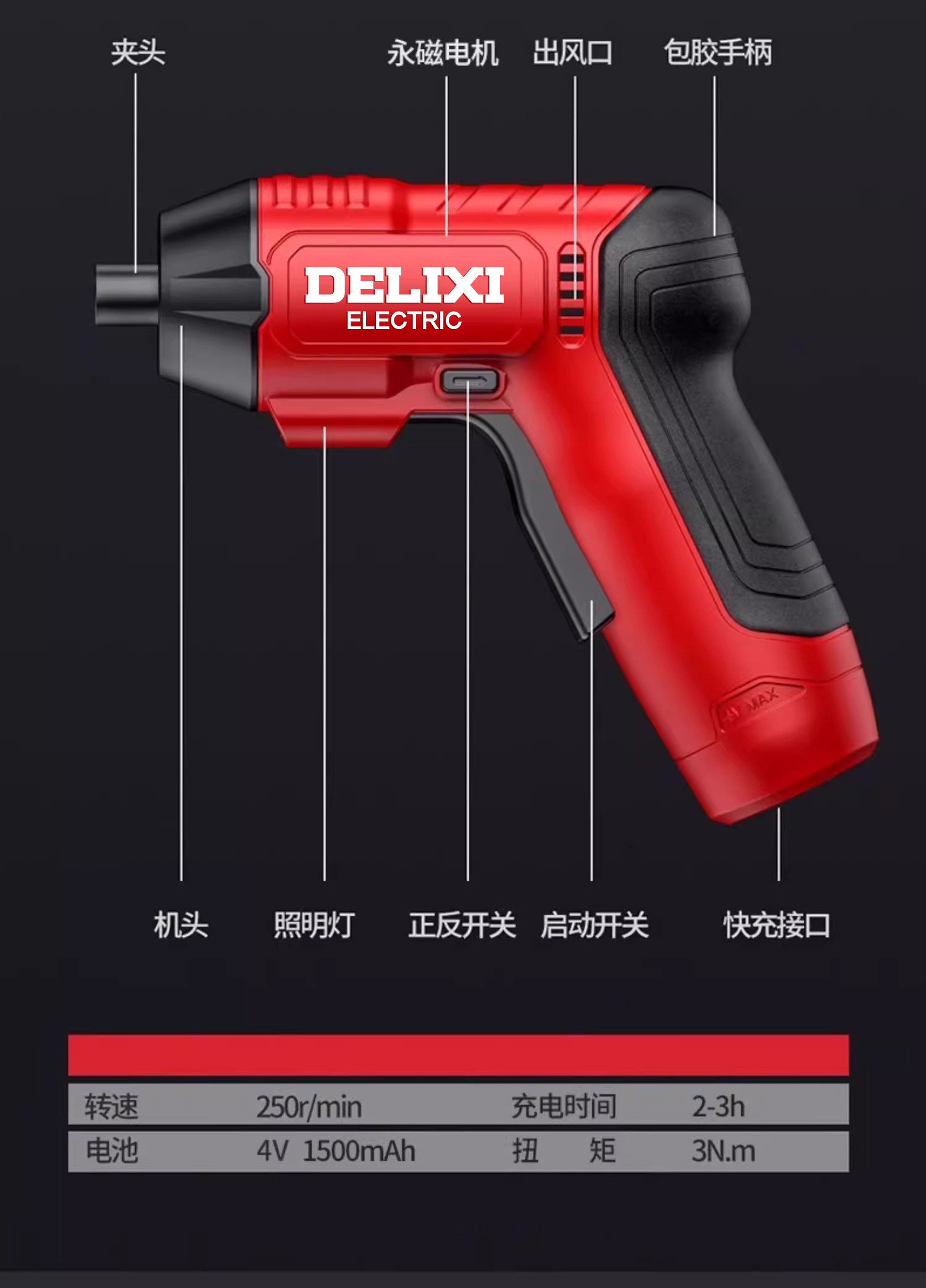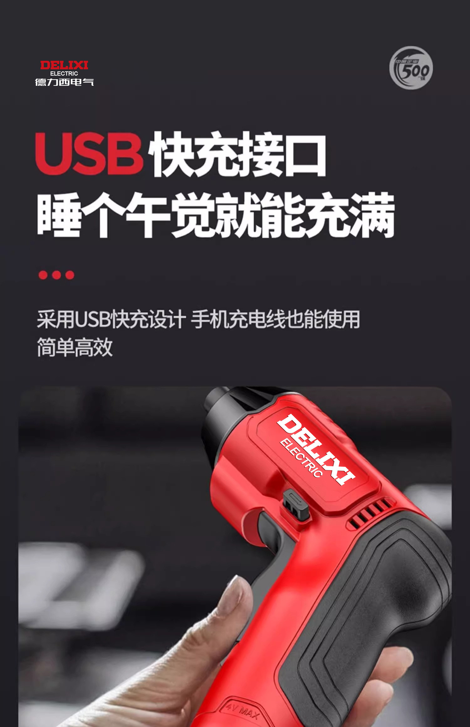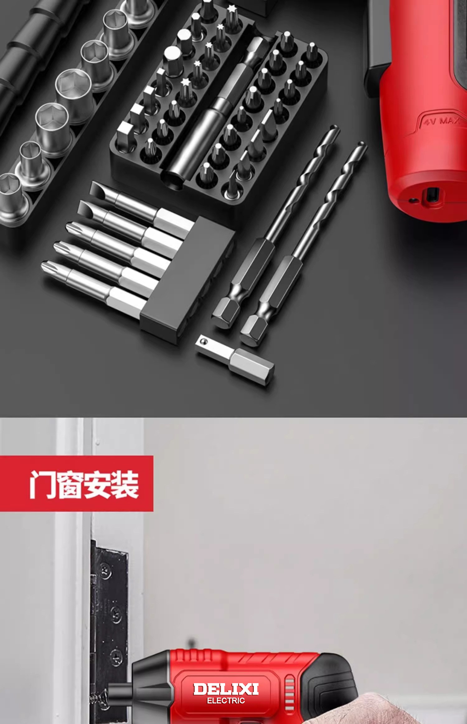 德力西电动螺丝刀充电式家用小型电钻起子迷你自动螺丝批套装工具